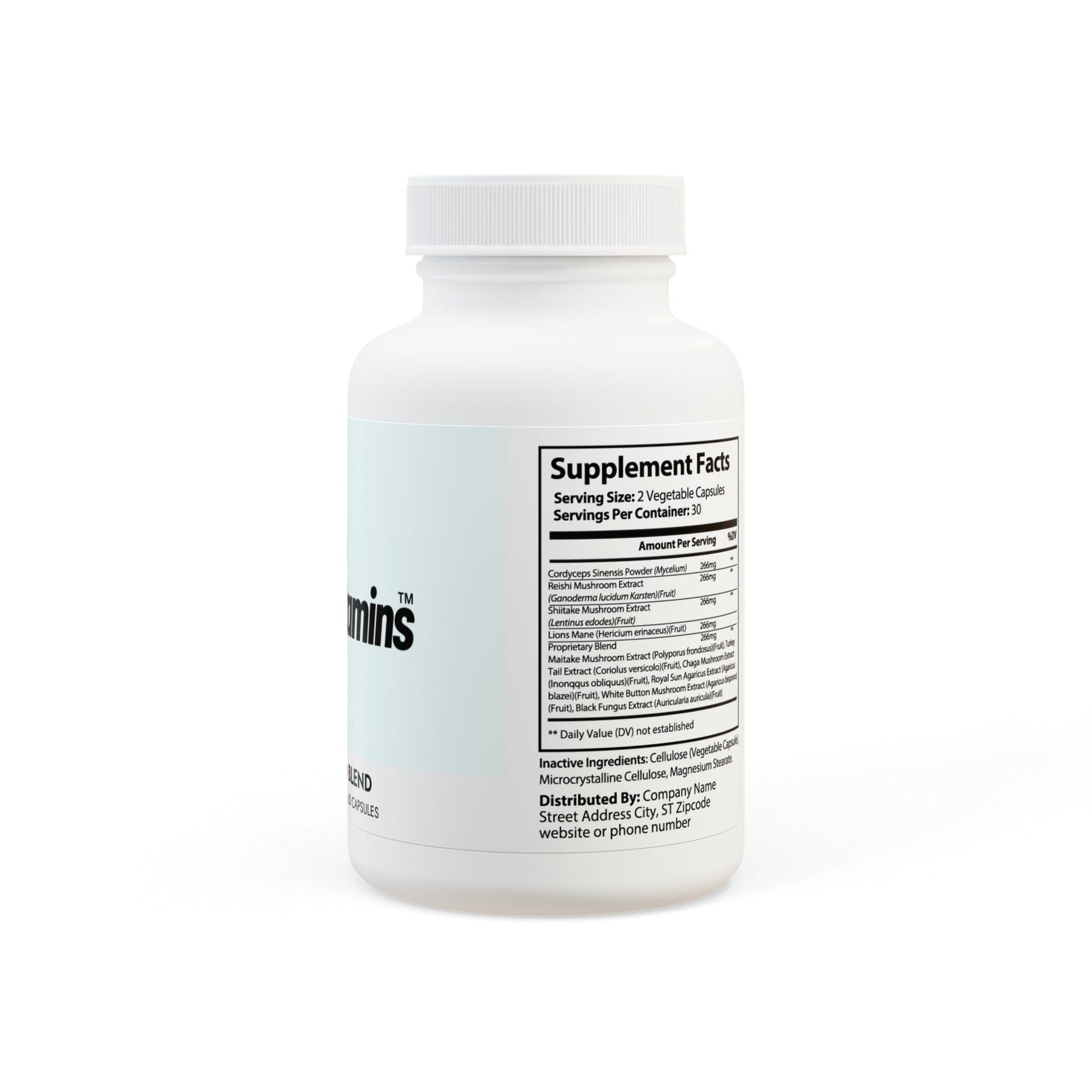 Ingredients: Cordyceps Sinensis Powder (Mycelium), Reishi Mushroom Extract, (Ganoderma lucidum Karsten)(Fruit), Shiitake Mushroom Extract, (Lentinus edodes)(Fruit), Lions Mane (Hericium erinaceus)(Fruit), Proprietary Blend, Maitake Mushroom Extract (Polyporus frondosus)(Fruit), Turkey Tail Extract (Coriolus versicolor)(Fruit), Chaga Mushroom Extract, (Inonqqus obliquus)(Fruit), Royal Sun Agaricus Extract (Agaricus blazei)(Fruit), White Button Mushroom Extract (Agaricus bisporus), (Fruit), Black Fungus Extract (Auricularia auricula)(Fruit), Cellulose (Vegetable Capsule), Microcrystalline Cellulose, Magnesium Stearate.